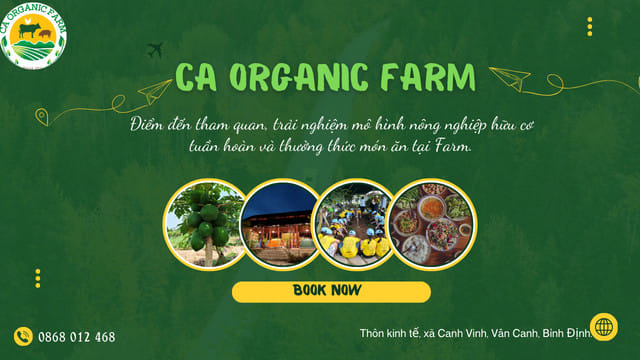 Ca Organic Farm – mô hình nông nghiệp hữu cơ tuần hoàn kết hợp du lịch trải nghiệm trên diện tích 5ha, là điểm đến lý tưởng cho những ai yêu thiên nhiên và lối sống xanh. Không cần mua vé, chỉ cần dùng bữa tại farm là bạn có thể tha hồ trải nghiệm: cho dê, thỏ, bò ăn, trồng – tưới – hái rau, check-in vườn dưa lưới, bắt cá vui nhộn… Các món ăn tại farm đều được chế biến từ nguyên liệu nuôi trồng tại chỗ, tươi ngon và đậm vị – nhưng nhớ là khách gọi mới bắt gà, bắt thỏ nên chịu khó đợi chút nha! Ngoài ra, farm còn có khu vui chơi, đốt lửa trại, hát karaoke giữa thiên nhiên cực chill.